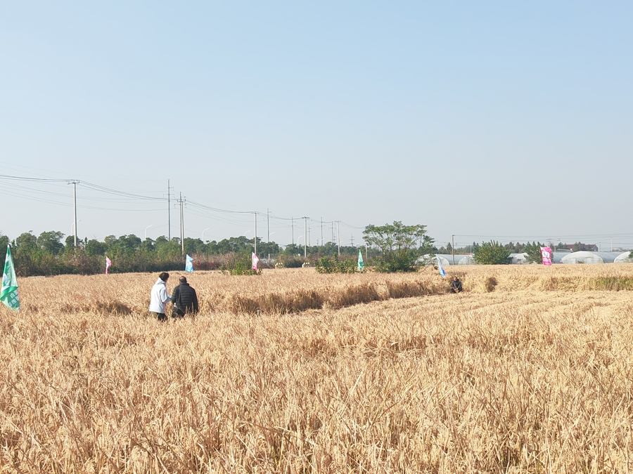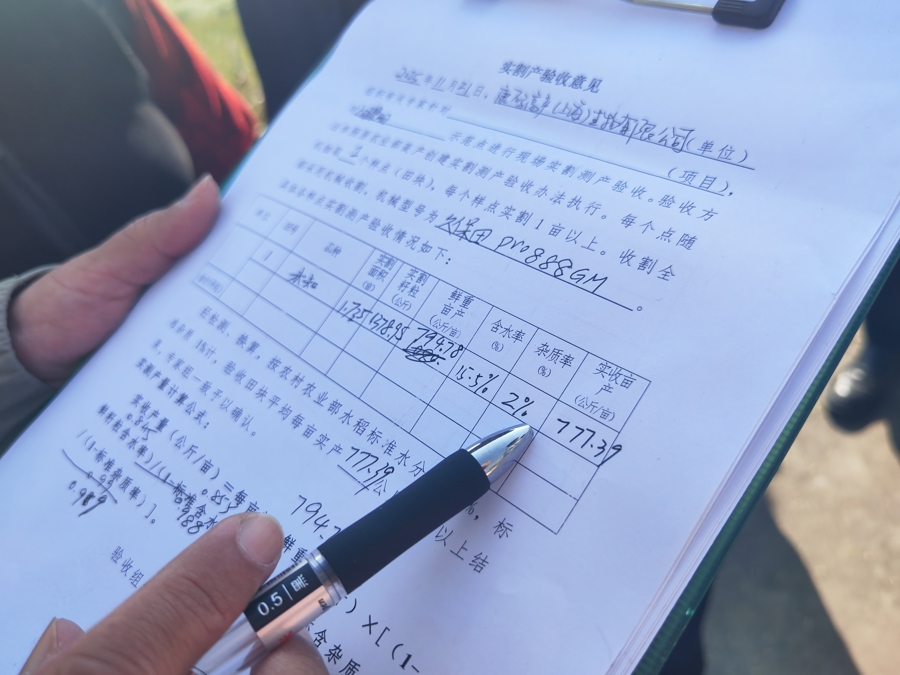 果然,11月21日上午10时,农林专家对这片种植“申优28”的示范田开启测产。一个半小时忙碌后,报告显示:实割面积1.735亩,综合含水率、杂质率等因素,实收亩产1554.78斤,创该品种在当地种植历史新高。
