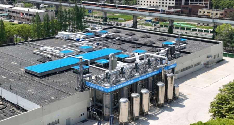 康码生物上海工厂单批次产量达160吨,是蛋白质合成领域全球唯一实现百吨级以上量产的生产线。