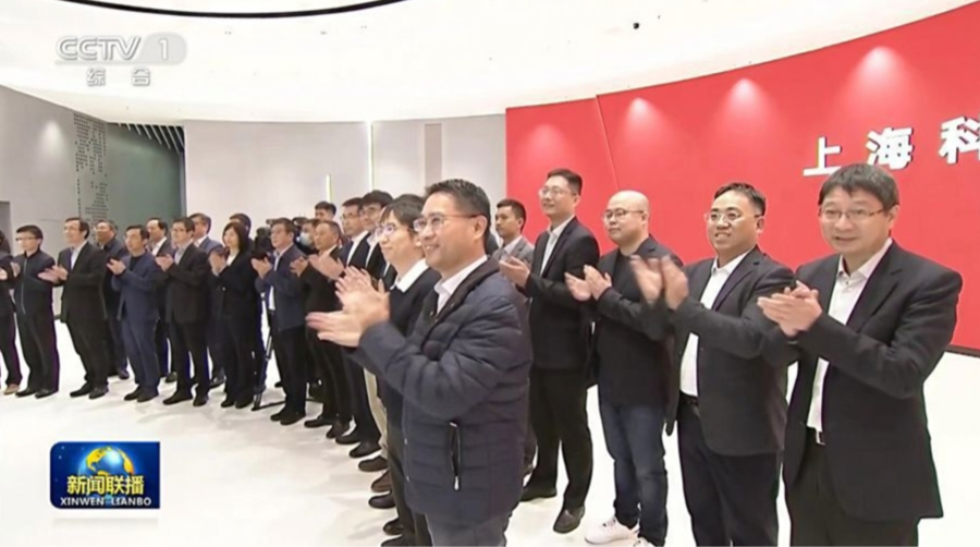 2023年11月,习近平总书记在上海考察科技创新成果展时,亲切会见包括康码生物创始人郭敏(二排右二)等在内具有自主创新能力的高科技企业家代表。(据央视新闻联播)